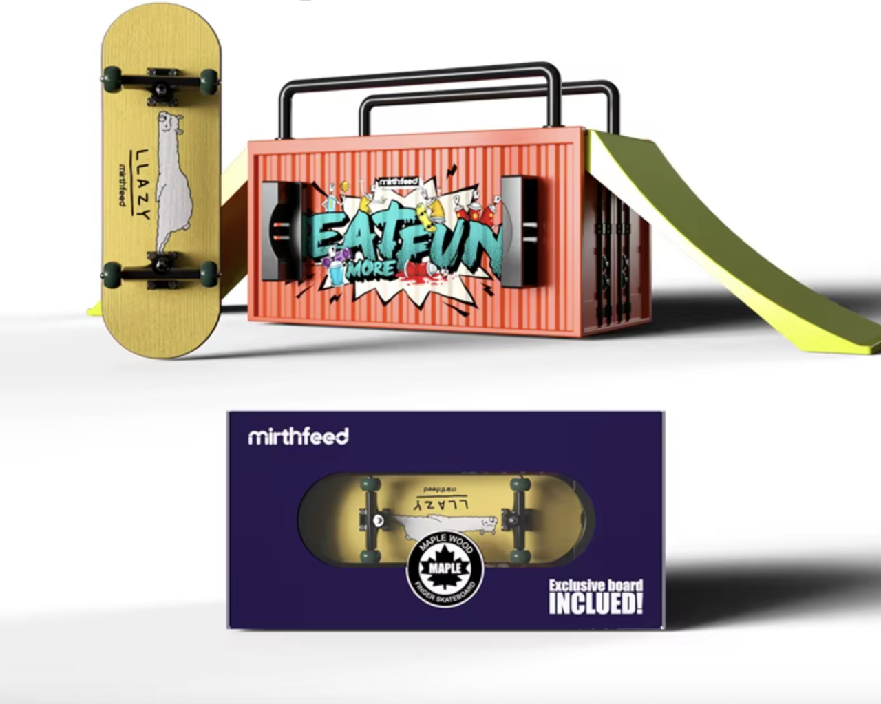 Отримай максимум драйву від фінгербордингу з набором Mirthfeed Lazy Lama — це повноцінний комплект для катання, відточення трюків і зберігання улюблених фінгербордів. У наборі є все, щоб створити свій міні-скейтпарк вдома або на виїзді: дерев’яний професійний фінгерборд із підшипниковими колесами та пластикова скейтпарк фігура-контейнер, яка виконує роль трампліна, боксу для грайндів та слайдів і кейсу для зберігання.